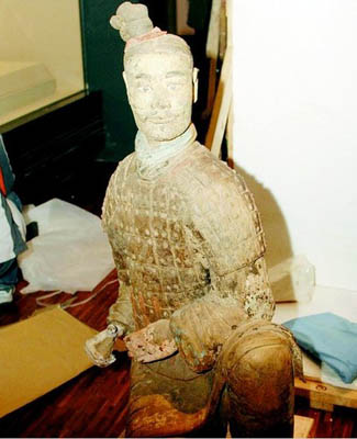 秦兵馬俑中唯一的綠臉俑自從發(fā)現(xiàn)的那一天起,就一直備受關(guān)注。自去年3月27日綠臉俑亮相陜西歷史博物館以來,參觀游客近百萬人,專家學(xué)者、普通觀眾紛紛提出各種疑問和看法,爭(zhēng)論至今還在繼續(xù)。