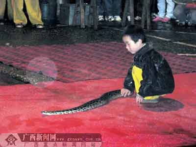 市民鄧小姐說,在表演中,有一少年將一塊毛毯圍在一個男孩頭部,然后擰動其脖子,動作十分危險,她很擔(dān)心男孩的人身安全。男孩斗蛇更加危險,萬一蟒蛇兇性大發(fā),后果不堪設(shè)想。