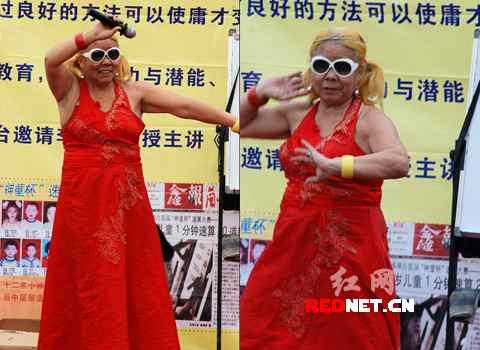 “太雷人了,老年人造型夸張前衛(wèi),童心未泯。 6日晚上,網(wǎng)友“求求你表揚我”在紅網(wǎng)論壇發(fā)了篇題為《我在株洲見到老年版“非主流”》的曝光帖,照片顯示一位老太看上去有60歲左右了,頭發(fā)為金絲色,戴著白色鏡框的墨鏡,身穿大紅色連衣裙。發(fā)帖人稱是一商家搞的速算免費講座,老太在做即興表演,引起不少人圍觀拍照。