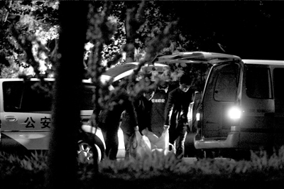 前天下午6點(diǎn),在學(xué)校西側(cè)的小樹林內(nèi),學(xué)生家長和同學(xué)發(fā)現(xiàn)了兩具尸體。當(dāng)晚,樹林旁的路邊停了十余輛警車,多名警察手持電筒、牽引著警犬在樹林內(nèi)勘察,并陸續(xù)從現(xiàn)場提取相關(guān)證據(jù)帶離現(xiàn)場。由于現(xiàn)場太暗,警方還調(diào)來一輛照明警車。昨天零點(diǎn)50分左右,兩具尸體被運(yùn)離現(xiàn)場。