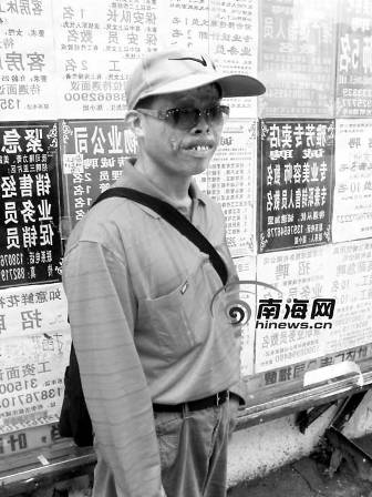 13日中午,南國都市報(bào)記者在三亞汽車總站附近見到吳國友。他戴著一頂帽子,帽檐下一副墨鏡,透過墨鏡依稀可見那雙畸形的眼睛。他走到哪兒都帶著一副墨鏡,因?yàn)樗履请p被燒傷的眼睛嚇到別人。