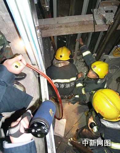 21時(shí)21分,消防官兵到場(chǎng)后發(fā)現(xiàn),事故現(xiàn)場(chǎng)是一幢在建的高層住宅樓,據(jù)安裝電梯的一名負(fù)責(zé)人講,事發(fā)前電梯停在28樓,當(dāng)時(shí)有兩名工人在電梯內(nèi)施工,其中一名在轎廂頂部,另外一名則在轎箱內(nèi)部,電梯突然失去控制后向下墜落,一直墜到了底層,兩名工人全部被困。電梯間內(nèi)則堆滿了鋼絲繩和一些零部件,轎箱根本無(wú)法向提升,現(xiàn)場(chǎng)的工人們只把轎廂上面的那名工人救了出來(lái),而轎廂被壓在了底層,加一名工人仍被困在轎廂內(nèi)。