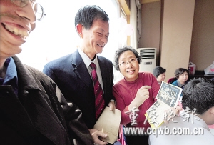 64級(jí)1班學(xué)生、在渝中區(qū)統(tǒng)戰(zhàn)部工作的王有惠為老師獻(xiàn)上一副題字,5班一位男學(xué)生奉上一幅書(shū)畫(huà)!斑@不是當(dāng)年的窮孩子馬慶嗎?”王忠篤說(shuō),馬慶父親早亡,母親獨(dú)自供養(yǎng)馬慶三兄弟,生活很困難。學(xué)校想辦法給他提供了每月8元的助學(xué)金,老師們也幫他湊生活費(fèi)!靶iL(zhǎng),我剛從渝中區(qū)商委主任和總工會(huì)主席的位置上退下來(lái),以后會(huì)常來(lái)看您!61歲的馬慶含淚道。