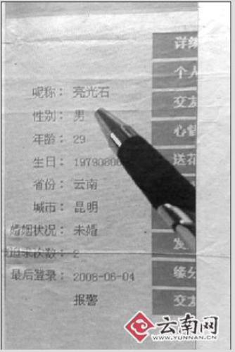 去年3月,網(wǎng)名為“迷惑夢(mèng)中人”的小麗(化名)閑著無事,便上云南信息港的交友網(wǎng)上玩耍,當(dāng)看見網(wǎng)名叫“亮光石”的征婚廣告:“29歲,無不良嗜好,采礦業(yè)執(zhí)行官,月收入兩萬元。誠(chéng)征20至28歲的單身女孩為終身伴侶,學(xué)歷高中即可”時(shí),小麗記下了他的聯(lián)系方式,雙方還互相留下QQ號(hào)碼。
