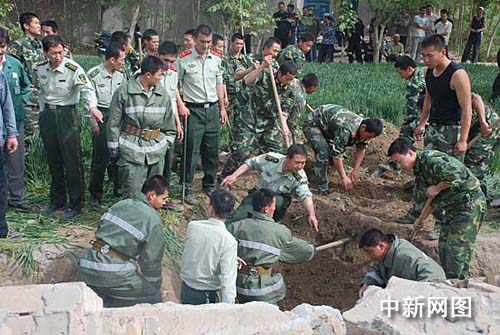 16時45分左右,和田地區(qū)消防支隊救援隊趕到現(xiàn)場,發(fā)現(xiàn)2名被困人員當場死亡,1名被困人員在當?shù)厝罕姷膸椭卤痪瘸,另?名被困人員被沉重的圍墻壓在下面,生命受到嚴重威脅。