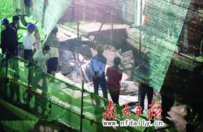 記者昨晚9時40分離開現(xiàn)場時,有關部門的工作人員正在用儀器勘測。目前,事故原因仍在進一步調(diào)查中。(記者/張鵬)