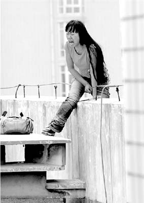“許昌一市民打來長途電話稱,一女子在鄭州市友愛路中原商貿城中的中原商務樓頂,想跳樓自殺!弊蛉14時許,特巡警二大隊中隊長劉洪剛接到110指令后,立即帶領3名民警趕到現(xiàn)場。只見,一長發(fā)女子坐在樓頂的墻邊,不停地打著電話,情緒很是激動。