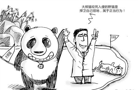 楊誠(chéng)讀大學(xué)時(shí)學(xué)的是野生動(dòng)物保護(hù)專(zhuān)業(yè),到基地工作擔(dān)任大熊貓飼養(yǎng)員已經(jīng)有3年的歷史。他說(shuō):“大熊貓有強(qiáng)烈的領(lǐng)域感,無(wú)論圈養(yǎng)還是野生,它們的領(lǐng)地都是神圣不可侵犯的。估計(jì)這只野貓是跳進(jìn)了成功的活動(dòng)場(chǎng),被成功發(fā)現(xiàn),沒(méi)有逃脫。”成功咬死入侵的野貓捍衛(wèi)領(lǐng)地,是正當(dāng)行為。