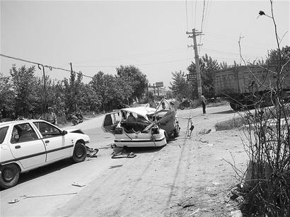據(jù)附近廢品收購點的一位目擊者稱,昨日上午10點55分,106國道新(洲)徐(古)公路交叉處,一輛白色捷達小轎車沿新徐公路自東向西疾馳,與沿106國道由北而南駛來的一輛重型自卸貨車相撞。轎車右后側(cè)被撞后發(fā)生180度大旋轉(zhuǎn),隨后又撞到路邊一輛停著的小車方才停下。據(jù)悉,捷達小轎車上有四男一女,司機鄭某受傷,兩男當(dāng)場身亡,另一男一女被送往醫(yī)院,其中男子在送醫(yī)途中死亡。