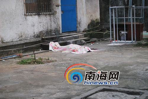 上午10時(shí),南海網(wǎng)記者趕到事發(fā)現(xiàn)場(chǎng)時(shí),墜樓者的遺體仍躺在原地,上面蓋有一層床單。墜樓地點(diǎn)為科技大廈后面的停車場(chǎng),尸體左邊就是圍墻,右邊停放著幾輛車。