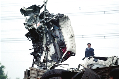 凌晨4點(diǎn)左右,現(xiàn)場(chǎng)只剩下4輛被毀嚴(yán)重的事故車(chē)。現(xiàn)場(chǎng)散落著飲料瓶、家具零件和成卷的鋼索,這些都是大貨車(chē)上裝載的貨物。4輛貨車(chē)駕駛室均嚴(yán)重變形,一輛大貨車(chē)的駕駛室被燒成了空殼。