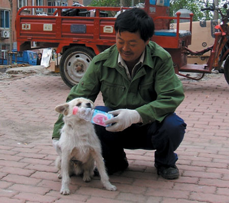 這只流浪的小狗叫小丑兒,原來(lái)的主人住在星海街,因?yàn)榘峒叶鴮⑺z棄了。今年4月大,連降了一場(chǎng)很大的雨雪,因天氣的原因,收廢品的王先生沒(méi)有出門,在家中把幾天收的廢品整理一下。在搬廢品的時(shí)候,王先生突然聽(tīng)到類似呻吟的聲音,于是就順著聲音找去,看到了一只白色的小狗蜷縮在廢品邊上,瑟瑟發(fā)抖,無(wú)精打采的,眼睛里流露出求助的神情。王先生把它抱進(jìn)屋,并給它吃的喝的。當(dāng)天氣暖和時(shí),王先生便把小狗送到了門外,準(zhǔn)備放走,可這只小狗怎么也不肯離開(kāi)王先生。從此,王先生出去收廢品的時(shí)候,走到哪里,小丑兒便跟到哪里,還把街上被人遺棄的瓶子,撿到王先生的跟前。后來(lái),王先生從鄰居們那得知小丑兒的經(jīng)歷,便把它留在了自己身邊。