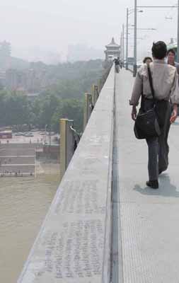 用毛筆寫下愛情表白,用小刀刻下游覽感受,本來很浪漫的情景,卻不和諧地出現(xiàn)在長(zhǎng)江大橋護(hù)欄上。