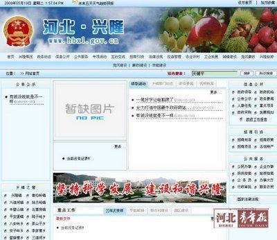 根據(jù)網(wǎng)帖中提供的網(wǎng)址,記者昨日順利打開了“史上最雷人最詭異的政府網(wǎng)站”。網(wǎng)站首頁頂端標(biāo)有“河北·興隆”的字樣。瀏覽器地址欄顯示網(wǎng)站域名屬于政府類網(wǎng)站,網(wǎng)址為:。