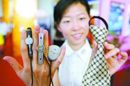 格子領(lǐng)帶、漂亮的徽章、黑色鋼筆帽……參展商頤信科技有限公司的工作人員介紹,任何物體經(jīng)過(guò)改裝都能藏進(jìn)針孔攝像頭,作為存儲(chǔ)設(shè)備的主機(jī)與攝像頭分離,只有收音機(jī)大小,約有一袋奶的重量,可以放在兜里,接出來(lái)的電線就像隨身聽(tīng)的電線,既方便又隱蔽。這種警務(wù)隨錄機(jī)又稱(chēng)現(xiàn)場(chǎng)執(zhí)法取證儀,用于各主要執(zhí)法部門(mén)的現(xiàn)場(chǎng)音視頻執(zhí)法取證工作,可以連續(xù)攝錄6個(gè)小時(shí)。