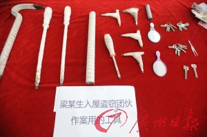 據(jù)警方介紹,該盜竊團伙從去年11月至今年5月,專偷城區(qū)八九層高的樓梯樓,男女配合,短短半年瘋狂作案130宗,作案地點遍布荔灣、越秀、黃埔、海珠和天河各區(qū)以及深圳等地。此案的破獲是省公安廳、市公安局部署開展“創(chuàng)平安,迎國慶”重點打擊專項行動后的重大成果,該案也成今年來廣州偵破的規(guī)模最大的盜竊系列案。這個大盜團伙的作案風格非常奇特,周一至周五他們每天早上7時從深圳飛車來廣州作案,下午返回深圳,基本不在廣州停留消費,卻掠奪了廣州市民大批財富。