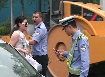 “當時我搭乘的出租車和她的車之間隔了3輛車,等行駛到湖西路與紅旗街交會處時,她的車遇到紅燈才停下來!比~警官回憶,13時15分左右,他將女子的車攔截下來,再次要求女子出示駕照,但女子仍然拒絕。