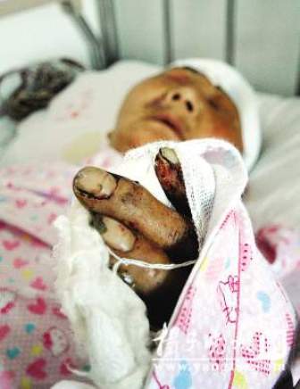 在南京軍區(qū)總醫(yī)院的一張病床上,記者見到正在輸液的李步琴老人,她頭部、手部纏著厚厚紗布。記者了解到,不連頭上的傷,老人手指、鎖骨、肋骨五處骨折,還餓了4天,老人現(xiàn)在已經(jīng)恢復(fù)了神志,思維敏捷,不能不說是個(gè)奇跡。老人告訴記者,5月19日傍晚她和工程隊(duì)開挖土機(jī)的吵了一架,因?yàn)樗麄兺趬牧俗约旱牟说亍.?dāng)天晚上8點(diǎn)多鐘,突然有個(gè)人沖進(jìn)她居住的泵房,進(jìn)門就跟她要錢。剛開始她以為遭遇劫匪,無奈之下,只好從口袋里掏出一張皺巴巴的百元鈔票,可對方拿到錢后,仍不罷休,竟然揚(yáng)言要火燒房子。還不問青紅皂白,甩起一根棍子就朝她頭上夯,她雙手抱住頭,棍棒繼續(xù)擊打在她的頭上、身上,直到她昏死過去。老人居住的地方?jīng)]有水電,因此當(dāng)時(shí)光線黑暗,她沒有看清楚對方什么樣子,但是她記得對方毆打她的時(shí)候曾經(jīng)問過她:“以后還給不給開路?”這個(gè)“開路”是什么意思?老人解釋說,她的菜地占了挖掘機(jī)的路,她曾經(jīng)與對方交涉過多次。
