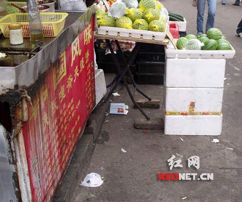 目前雙方恢復營業(yè),“敏感地帶”仍擺放著兩壘西瓜