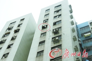5月28日早上5時50分,東莞市虎門鎮(zhèn)某花園C座一女子劉某呼喊救命,之后劉某用兩條床單綁在一起,再將床單綁在14樓一窗戶上順著床單沿窗口爬出。由于體力不支,墜落當(dāng)場死亡。