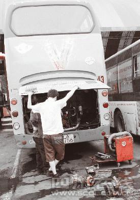 據(jù)維修工人介紹,冒煙的公交車的確出了故障,但問(wèn)題不大,主要是發(fā)動(dòng)機(jī)排氣管上的空氣壓縮機(jī)壞了,更換新的壓縮機(jī)后就不會(huì)有問(wèn)題了。記者仔細(xì)觀察了被換下的空氣壓縮機(jī),這是一個(gè)類似于鼓風(fēng)機(jī)的東西,據(jù)說(shuō)加裝在排氣管上后,可以利用空氣動(dòng)力學(xué)原理在原先的基礎(chǔ)上加大車輛動(dòng)力!氨确秸f(shuō)原來(lái)的柴油機(jī)動(dòng)力是150馬力,加裝了空氣壓縮機(jī)就可以達(dá)到200馬力或者更多!本S修工人說(shuō)。