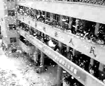 昨日,記者在某著名視頻網(wǎng)站上看到了該視頻:整個(gè)教學(xué)樓一片混亂,不少學(xué)生都將課本、復(fù)習(xí)資料撕掉,從樓上往下扔,紛紛揚(yáng)揚(yáng)的紙片如暴雪一般落下,教學(xué)樓前的空地則全是書本碎片,視頻里還可以聽到學(xué)生的歡呼聲,整個(gè)視頻時(shí)長(zhǎng)40秒。