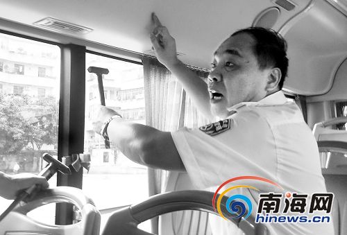 同時,海口市運管部門有關(guān)負(fù)責(zé)人表示,現(xiàn)在的大巴公交車的玻璃均是鋼化玻璃,遇到緊急情況時,乘客可用安全錘或其他硬物敲碎玻璃后直接用身體撞開玻璃窗。