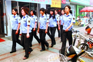 昨日,(江蘇)連云港市東海縣女子城管隊員在縣城步行街巡邏。為充分發(fā)揮女性在城管執(zhí)法工作中特有的耐心、細心和善于溝通等特點,著力打造城管行政執(zhí)法新亮點,近日,連云港市東?h成立了城管行政執(zhí)法大隊女子中隊。該女子中隊目前共有10名隊員,主要負責(zé)在中心城區(qū)主干道進行城管巡查,通過女性特有的親和力和感染力,化解執(zhí)法過程中出現(xiàn)的矛盾。