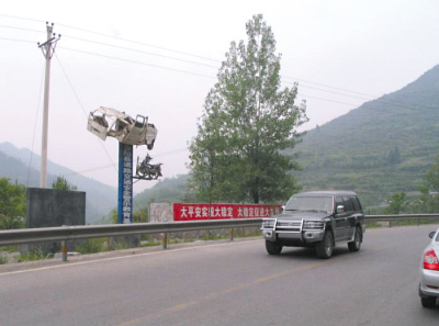 在國道一旁,一部只剩癟形外殼的汽車被高懸在近20米的半空中,令過往此地的司機無不瞠目結(jié)舌。近日,被稱之為“最牛交通安全警示教育基地”的照片出現(xiàn)在大渝網(wǎng),其極富創(chuàng)意的宣傳方式讓眾多網(wǎng)友拍手稱贊。