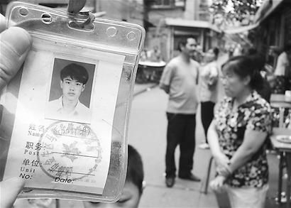 “就是這個小伙子,脾氣火爆得很!”旁邊一位太婆趕緊摸出一張工作證:“就是他!他打人的時候把工作證掉在了地上,我偷偷撿起來的!庇浾甙l(fā)現(xiàn),工作證上貼著一個年輕小伙子的頭像,下面寫著“姓名:孫川林”,并蓋有一個“成都市金牛區(qū)馬鞍北路XX(字跡模糊)市場”字樣的印章。