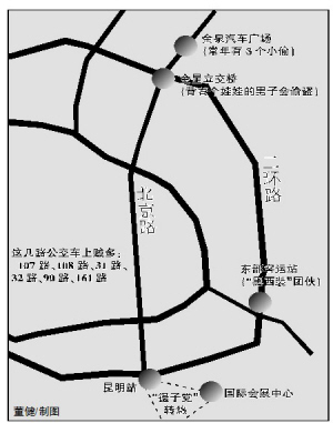 “真有那么夸張,親眼所見(jiàn)!睂(duì)于活動(dòng)在東部客運(yùn)站的“黑西裝”團(tuán)伙,帖主強(qiáng)調(diào)“親眼所見(jiàn)”的同時(shí),還用了“夸張”一詞描述。帖主說(shuō),你提包上車時(shí)“黑西裝”一哄而上,伺機(jī)下手。而在金星立交橋附近,則有個(gè)三年如一日背著個(gè)不會(huì)長(zhǎng)大的娃娃的男人,很好認(rèn),(大家要)見(jiàn)他就閃!還有,國(guó)際會(huì)展中心那里,至少兩個(gè)人……遇到在昆明站轉(zhuǎn)悠的“鑷子黨”,不要把錢放在外衣口袋里。