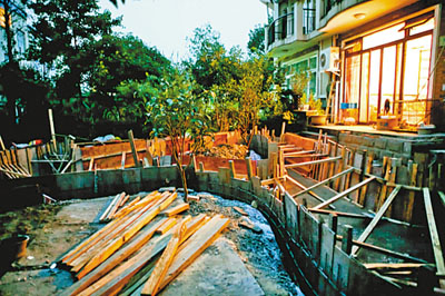 記者問到,這樣改建會不會破壞綠化!安粫,請周圍的業(yè)主放心吧,這塊地也絕對不會挪作他用,只不過建一個池塘而已!睂τ诰G地上原先栽種的樹木,郭小姐說他們挖出了兩棵,打算移植到別的地方。