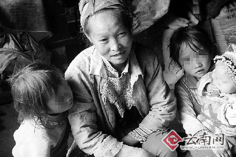 背上背著“十一妹”,手里一邊牽著女兒,一邊牽著弟弟,在阿勇的大姐帶領(lǐng)下,記者來到了她家,正巧她媽媽打豬草剛剛回來。張秀瓊看上去身體已經(jīng)很虛弱,背著一大捆豬草步履蹣跚。張秀瓊家很簡單,泥土堆砌的一間破舊的小樓房,正堂里沒有任何家具,只有一張飯桌和一個(gè)火塘。飯桌上的飯盆是一些吃剩的玉米飯,這就是一家人的主食。正房旁邊有一間破舊的偏房,里面擺放著兩張用磚壘起的土床。張秀瓊說,平時(shí)所有的娃娃就都睡在這一屋里。29歲的楊桂瓊說,從她記事起,媽媽就一直在懷孕,生娃。爸爸一喝酒脾氣就很大,苦命的母親平時(shí)還要挺著大肚子去地里干活,是個(gè)苦命的“媽媽”。家庭里主要的經(jīng)濟(jì)收入就是平時(shí)靠父親上山挖藥賣錢,地里種的都是包谷,所以他們雖然沒有餓過肚子都是吃包谷飯,但幾乎沒有菜。這幾年生活雖然好了些,但一個(gè)月能吃上一回肉就已經(jīng)是奢侈了。
