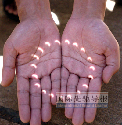 如果你沒有這些條件觀測日食,不妨學(xué)學(xué)古人。古人的土法包括:墨水觀測法,就是取一盆清水,加入墨汁,通過水面的反光觀看;小孔成像法,取兩張白紙,一張白紙上穿一個整齊的圓形小孔,將其對著太陽,另一張放在小孔后面,讓太陽光通過小孔在另一張白紙上成像;樹蔭觀測法,在日食的時候,樹蔭的縫隙就會成為天然的小孔,在樹蔭底下的小亮點都是太陽的小孔成像,你可以看到那些小亮點由圓到虧,每一個小亮點都是一個小小的日食影像,并且它有可能就在你身上!