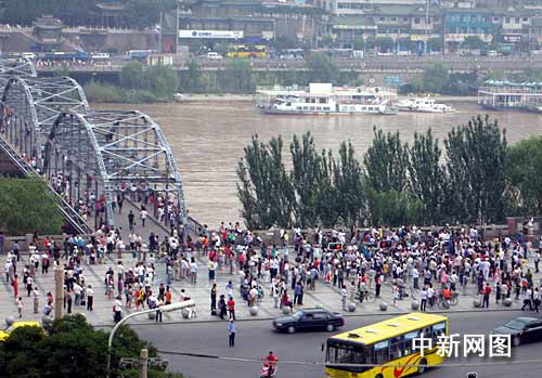 中新網(wǎng)蘭州7月22日電 (記者 劉薛梅) 為觀看500年一遇的罕見天象日全食,7月22日一大早,甘肅蘭州百年鐵橋中山橋廣場陸續(xù)聚集了近千人,借助西北師大天文臺(tái)提供的專業(yè)觀測設(shè)備,欣賞蘭州上空出現(xiàn)的日偏食。