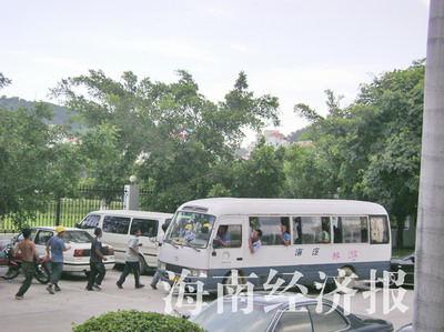 不久,120救護車趕到現(xiàn)場,拉上9名受傷工人準備開往三亞市人民醫(yī)院。就在救護車駛出工地時,一輛車號牌為瓊A05912的中巴車滿載數(shù)十名男子跟蹤其后。救護車上的工人們感到害怕,要求120救護車開進三亞市公安局求助。