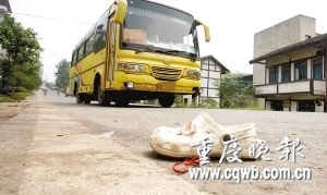 昨日上午11時(shí),記者前往現(xiàn)場發(fā)現(xiàn)。車禍發(fā)生在水土鎮(zhèn)藥王街入口處的“鑫旭酒樓”門前,肇事車當(dāng)時(shí)由水土鎮(zhèn)往金刀峽方向行駛。盡管車禍現(xiàn)場已被交警部門處置,肇事轎車被拖走,但現(xiàn)場仍可見大量血跡遺留地面,一雙沾有血跡的女式白色涼鞋靜靜地躺在馬路中間。旁邊圍墻上,肇事轎車將其撞開了一個(gè)籃球大小的窟窿。