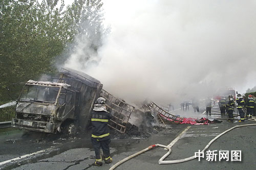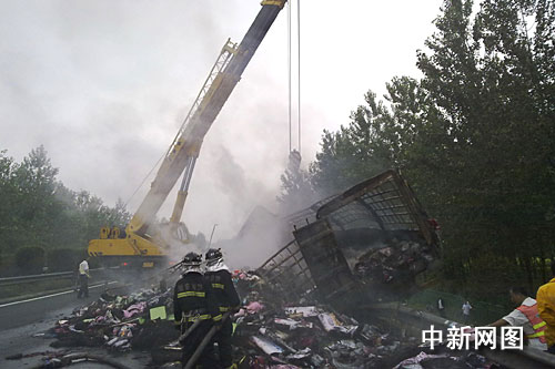 中新網(wǎng)南京七月三十一日電(衡中強(qiáng) 馬曲侃 朱曉穎)記者從淮安市消防支隊(duì)了解到,今日上午在京滬高速公路江蘇淮安市段九十三公里處一輛大貨車突發(fā)自燃,車上所載大量衣服和被套全部被焚為灰燼。由于火勢(shì)過猛,消防官兵用了兩個(gè)小時(shí)才將大火撲滅。