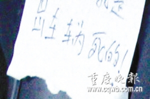 江北CBD、重慶市大劇院右側(cè)空壩,時(shí)常有人駕車到此游玩。昨日下午,一妙齡女子被發(fā)現(xiàn)橫尸于空壩上停放的一輛小轎車內(nèi),該車內(nèi)排擋桿旁還有一張神秘紙條,上面寫著“我是出車禍死的。”據(jù)目擊者稱,這輛小車在此處停了有3天。