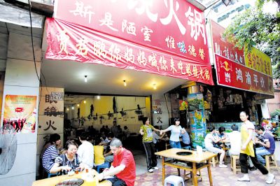 昨天下午,記者根據(jù)該帖,在江北建北八支路找到了這家火鍋店,據(jù)該店店員小王介紹,橫幅掛于一周前,是店老板掛上去的,但現(xiàn)在老板去外地出差了。她說(shuō),她也不知道這則標(biāo)語(yǔ)是什么意思,只是發(fā)現(xiàn)這句標(biāo)語(yǔ)掛上去后,許多來(lái)吃火鍋的人,總喜歡指著標(biāo)語(yǔ)哈哈大笑。“賈君鵬可能是我們老板的朋友吧。”另一位員工如是告訴記者!
