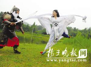 “江湖笑恩怨了,人過(guò)招心不老……”4日下午2點(diǎn),南京江寧區(qū)南山湖景區(qū)儼然成了古裝戲的外景地,3對(duì)年輕男女在此像模像樣地演繹個(gè)性“私人電影劇照”,——將《神話(huà)》、《神雕俠侶》、《十面埋伏》等古裝武俠電影中的經(jīng)典場(chǎng)景翻版演繹,用他們的話(huà)說(shuō),著實(shí)圓了一回都市人的“成人童話(huà)夢(mèng)”。