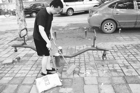 昨日上午11時,記者趕到鄭上路省紡機(jī)社區(qū)時,看見張月正在清掃小區(qū)健身區(qū)的地面(如圖)。巡防隊員朱幸說,張月的事見報后的第二天,他和隊友郭長河就成了張月家的?停宜勑,經(jīng)多次做工作,張月才同意到醫(yī)院治療。7月22日,在鄭州市第八人民醫(yī)院治療了一個月的張月,康復(fù)出院回家。到家后,張月仍不愿出門,朱幸和郭長河又多次找張月聊天。社區(qū)主任王曉波也主動到張月家,每天上班時,他都要把張月叫到社區(qū),讓他幫忙干點(diǎn)零活。經(jīng)過溝通和交流,張月變得開朗了許多,成了一名編外保潔員。王曉波說,社區(qū)為張月申請辦理了低保,讓他享受每月275元的最低生活保障。 □記者李嵐實習(xí)生吳瓊文首席記者閆化莊圖