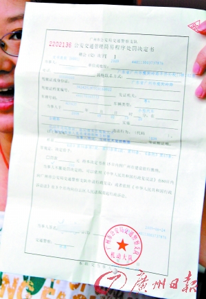 在陳先生收到的這份奇怪罰單內(nèi),記者留意到,該文件A4紙大小,紙張?zhí)ь^第一行寫著“廣東省公安廳交通警察局”幾個(gè)大字,除指出陳先生在天源路違章外,還記錄了他的姓名、身份證號(hào)碼、車牌號(hào)碼等信息,并在文件上要求陳先生15天內(nèi)去工商銀行匯款200元交付罰款,文件上還有相關(guān)的執(zhí)勤民警個(gè)人私章。不知情的車主必定會(huì)信以為真。