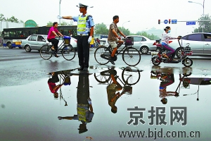 自從黃曉明在電影《愛(ài)情呼叫轉(zhuǎn)移Ⅱ》中出演了一名酷酷的帥交警之后,網(wǎng)上不斷出現(xiàn)各地最帥交警的視頻和帖子。8月2日,人民網(wǎng)上出現(xiàn)了“北京最帥交警”的一組視頻,網(wǎng)友還爆料說(shuō),這就是黃曉明出演交警的原型。“帥交警”一下子“火”了起來(lái)。拍攝這組視頻的是中國(guó)政法大學(xué)新聞與傳播學(xué)院2009年暑期社會(huì)實(shí)踐的幾個(gè)學(xué)生,拍下這些畫(huà)面的一名學(xué)生在鳳凰博客上感慨:“穿上警服戴上墨鏡的孟警官,整個(gè)人的感覺(jué)不知要比黃曉明版的交警帥了多少倍。尤其是他指揮交通的時(shí)候,真的有一種指揮千軍萬(wàn)馬、揮斥方遒的大將氣度!