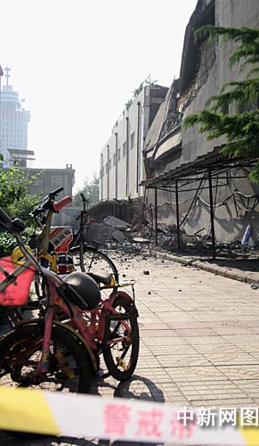 據(jù)在現(xiàn)場(chǎng)維持秩序的裕華區(qū)政府工作人員介紹,由于要拆遷的河北賓館與住宅樓距離太近,因此無法實(shí)行爆破拆除,只有動(dòng)用大型機(jī)械勾機(jī)等按部就班地進(jìn)行拆除。12日上午,河北賓館南側(cè)墻體在拆除時(shí),砸落的水泥塊將放置于墻根下的數(shù)輛自行車、電動(dòng)車砸壞,幸未造成人員傷亡。
