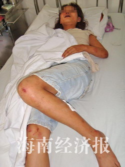 當(dāng)天下午,記者在瓊山人民醫(yī)院見到身上多處刀傷、頭部嚴重受傷的受害人林某。林某說,兩年前,曾與柯某爭奪過男朋友,柯某曾叫幾個姐妹來打她。她和幾個姐妹也把柯某及其姐妹打了。后來柯某的男朋友因搶劫坐了牢?履硡s一直對她懷恨在心。