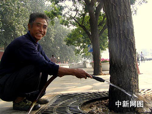 負(fù)責(zé)澆灌長安街沿路綠樹和花卉的工人侯立昌,每天從早上6點一直工作到晚上7點!皣鴳c人手不夠,咱們都得加班了”,61歲的侯立昌笑著告訴記者,每天澆完近60棵樹后,他都會加班參加鋪草坪、栽種花卉等工作。他說,加班從晚上11點開始,最短兩小時,最長要工作到凌晨三四點。