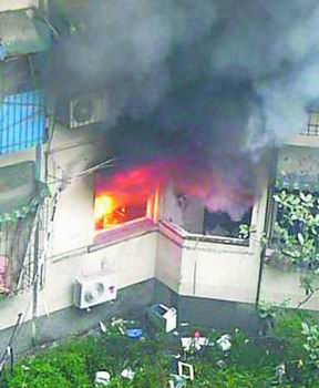 成都消防3、4中隊的消防車呼嘯趕來。因為過道太窄而且停滿了汽車,消防車進不了大院,只得將水管從大門外拉進起火的單元滅火。10多分鐘后,大火終于被撲滅。