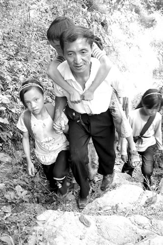 這是王正龍27年來唯一打的退堂鼓,仙峰苗族鄉(xiāng)中心校校長陳于強(qiáng)稱,對于王老師的“正常想法”,他們左右為難!拔疑岵坏煤⒆觽,但是我一個大男人靠工資吃不飽飯,我還要孝敬老人、養(yǎng)兒養(yǎng)女!”王正龍的話“刺痛”了陳于強(qiáng)!澳悴淮n了,一時沒人接替你,我們只好撤掉兩個年級,有條件的孩子只能下山來讀!标愑趶(qiáng)沉默了一陣后說。 “下山來讀?說得輕巧。”王正龍急了,這樣肯定有70%的孩子會輟學(xué),“我繼續(xù)教吧!山區(qū)的孩子不能沒有老師!”長嘆一口氣,王正龍又爬山路返回村小。