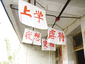 “我想上學(xué)”、“變相虐待”……一月來,幾乎每個(gè)到涪陵區(qū)防疫站體檢的人都會(huì)看到一家陽臺(tái)上掛著這樣的字幅。